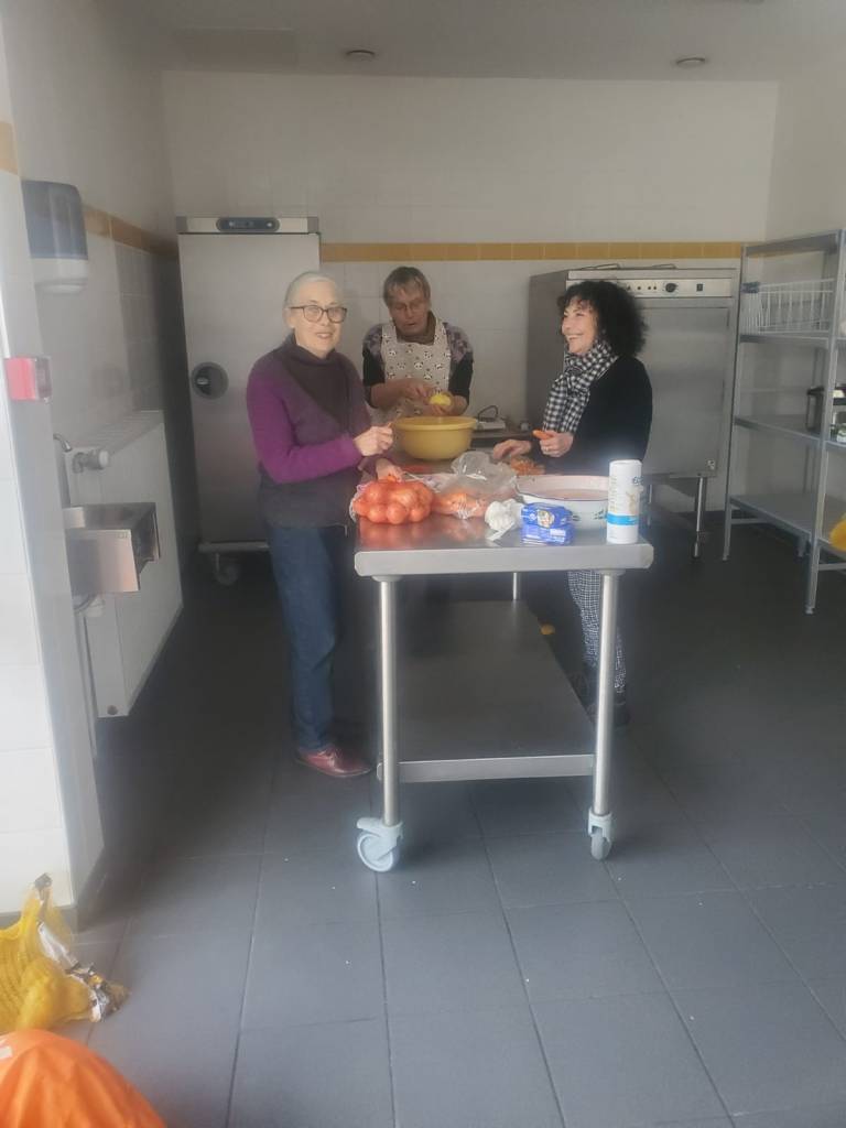 La préparation, bravo aux petites mains de la baraque, les cuisiniers.ères, Anne et sa recette de seafood chowder ( ci-dessous), Hugo de l’Eden Broc pour la déco, aux pâtissiers pour les cup cakes et les cheese cakes et tous les membres actifs de l’association pour leur travail , leur enthousiasme et pour leur investissement sans faille.