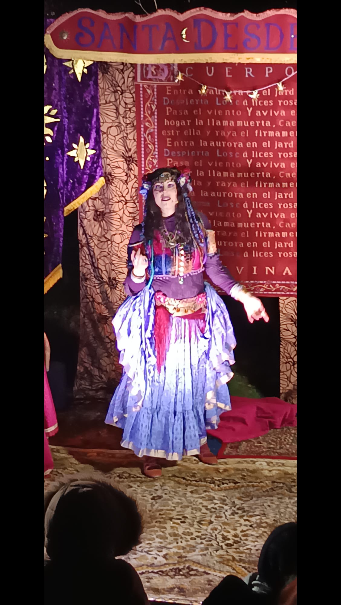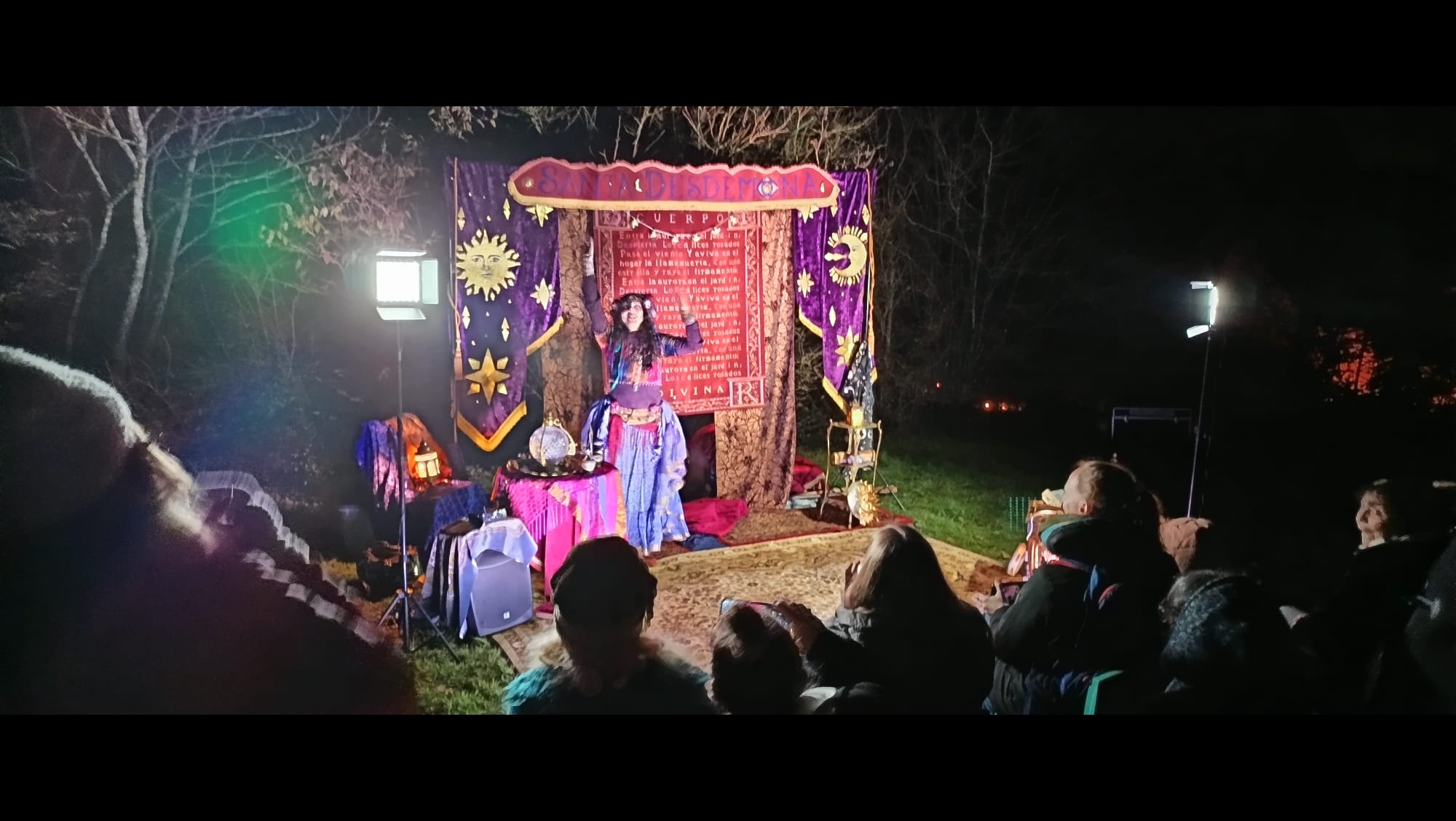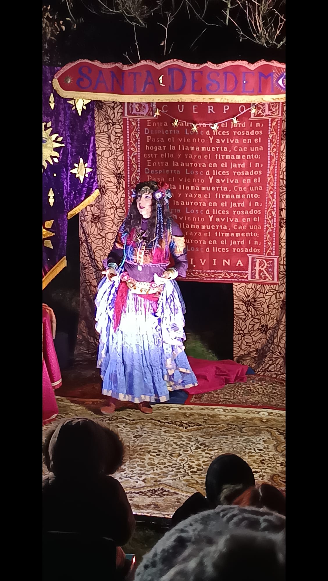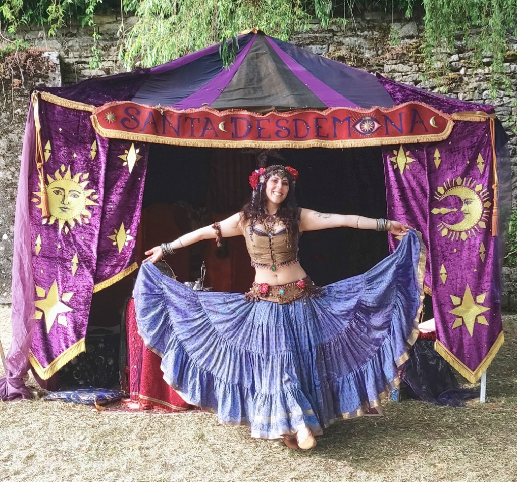 « Je suis Santa Desdemona, « Enchanteuse » : chanteuse conteuse et danseuse, incarnant de nombreux personnages principalement fantastiques et historiques, inspirés des univers imaginaires, des légendes, des mythes…