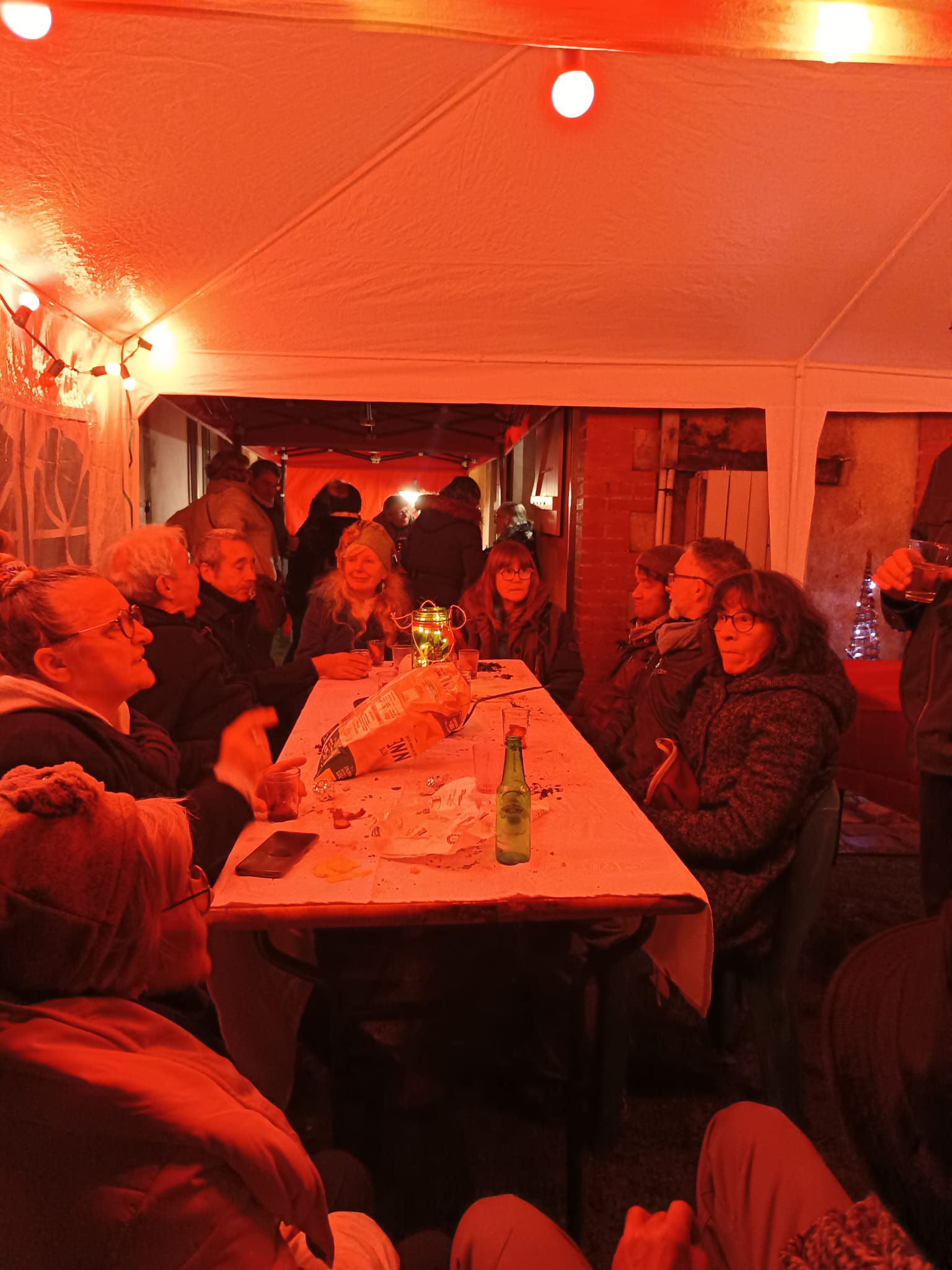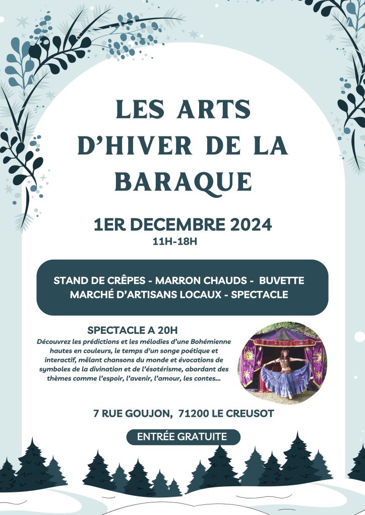 Très bonne journée hier avec beaucoup de joie,🎉 de feu attisé par Yves pour le plus grand plaisir des mangeurs de marrons🌰, des artisans talentueux et sympa😉, du vin chaud 🍷à bonne température, des bénévoles 🦾 hyper compétents et efficaces , le tout dans la bonne humeur, 🌞🌛un spectacle digne d’une fin de marché des arts d’hiver❄ par une artiste qui a conquis un public d’une soixantaine de personnes par avec une voix magnifique, des costumes et décors féériques et des visiteurs souriants, pas prssés🙂 qui n’ont pas hésité à faire des achats de Noël 🎄à papoter et faire tourner la buvette.💶