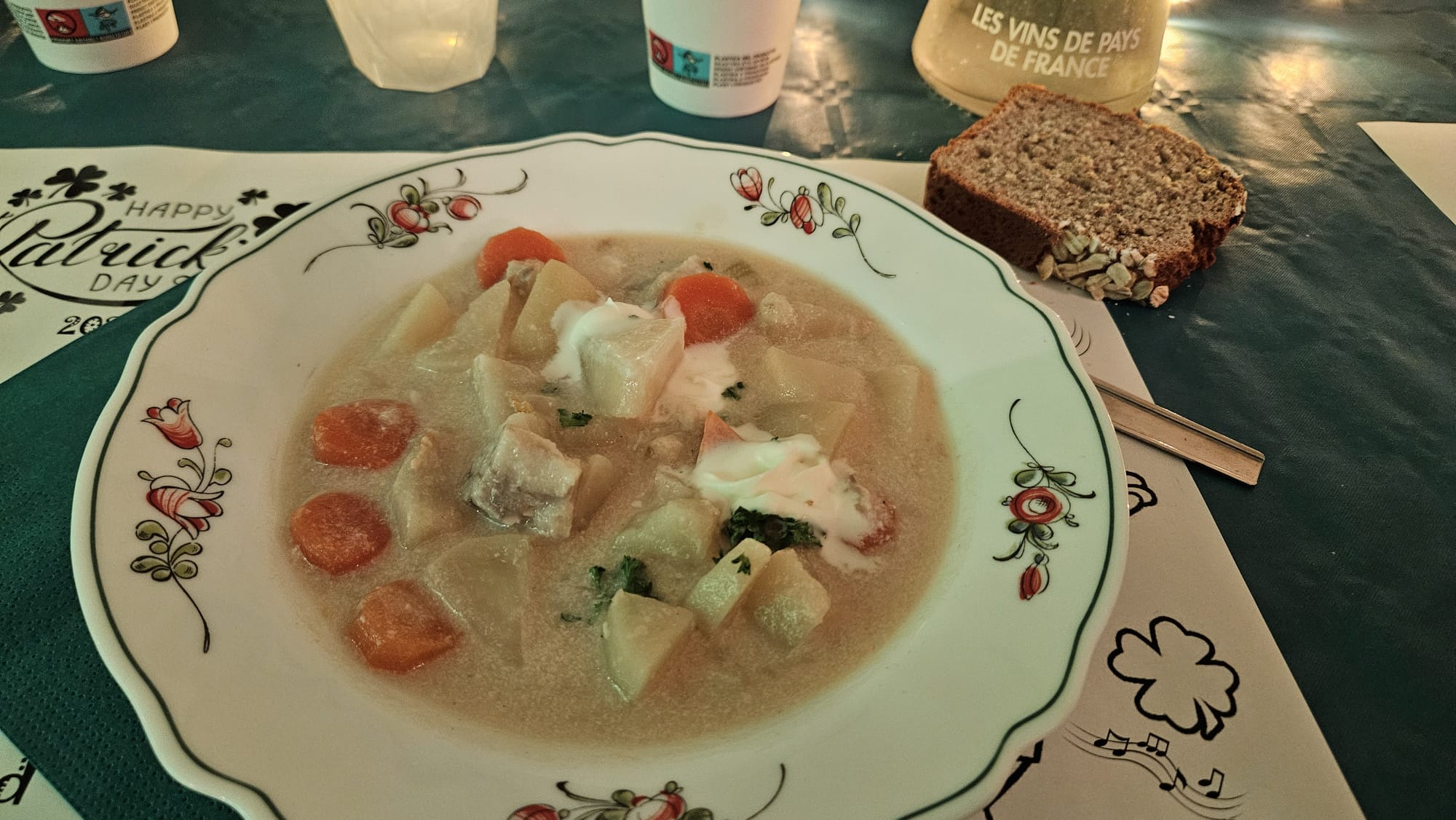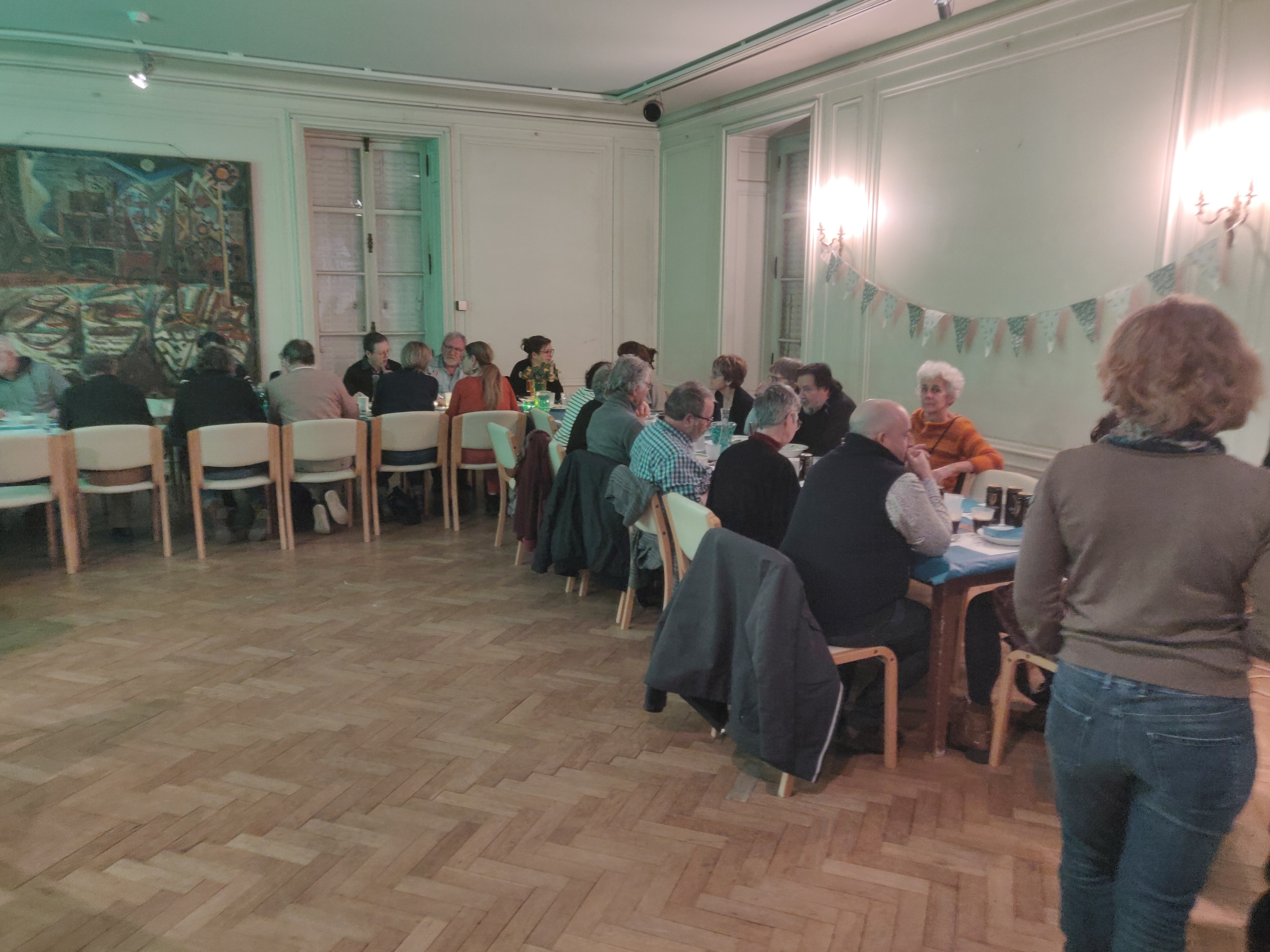 Repas pour ceux qui se sont inscrits, entièrement préparé par Anne et les petites mains de la baraque, desserts préparés par Christophe et Isabelle.