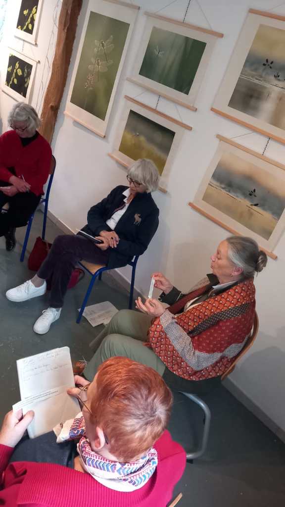 Dans une ambiance à la fois joyeuse et concentrée, l’atelier d’écriture mené par Isabelle Loisy a ouvert grand les portes dela création. Avec une belle dose d’enthousiasme et un sens de l’écoute, Isabelle a su guider les participant·e·s avec professionnalisme et bienveillance, les invitant à jouer avec les mots, à oser les images, à se laisser surprendre par leur propre création. Rires, silences inspirés, partages spontanés : chacun a trouvé sa voix dans cet espace à la fois stimulant et accueillant.