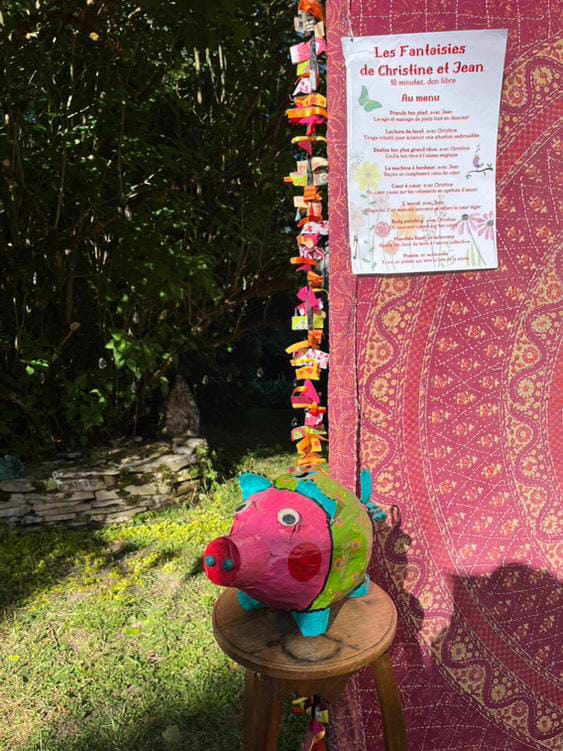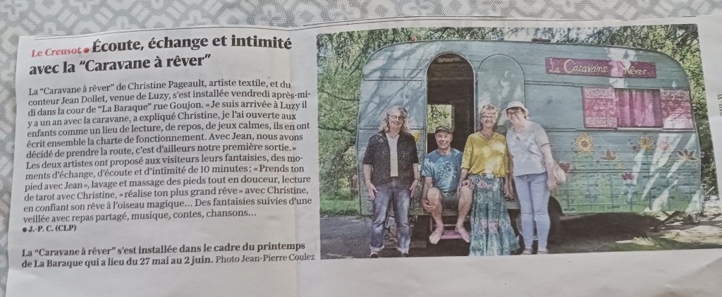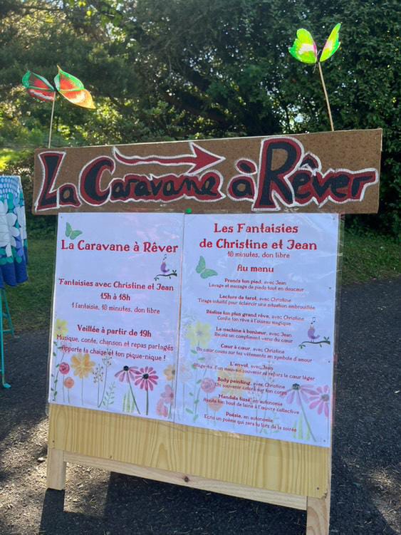 Le jardin s’est a accueilli les visisteurs avec la Caravane à rêver : un duo d’artistes a distillé tout l’après-midi des instants de fantaisie, des surprises pour les curieux qui ont grimpé la Marolle pour quelques petits instants suspendus dans la lumière radieuse d’un après midi très ensoleillé.