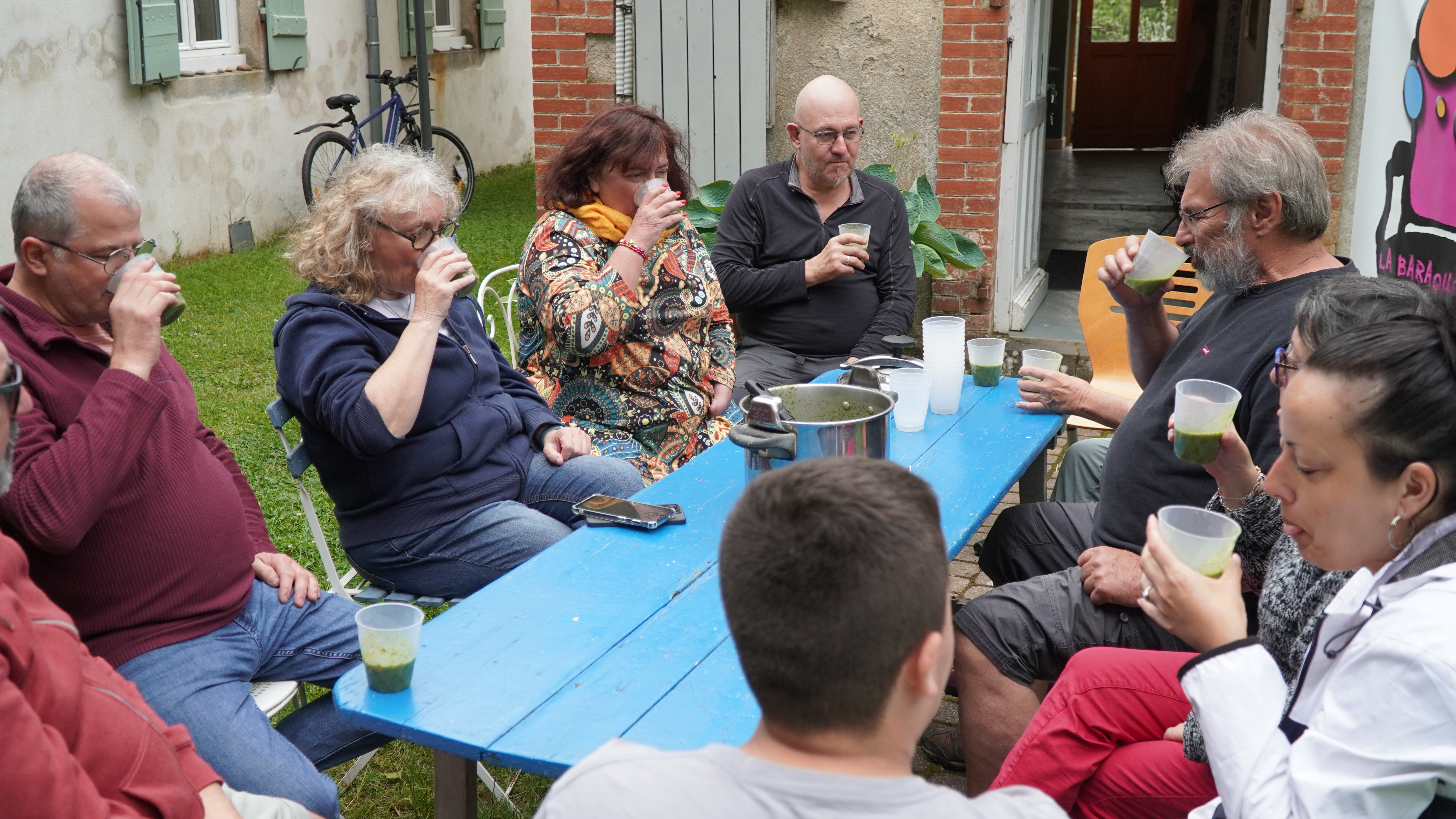 Dernier volet du printemps de la baraque, balade commentée par Damien pour observer les libellules, et dégustation de plantes sauvages : soupe d’orties de Anne et glace au sirop de gratte cul, un régal!