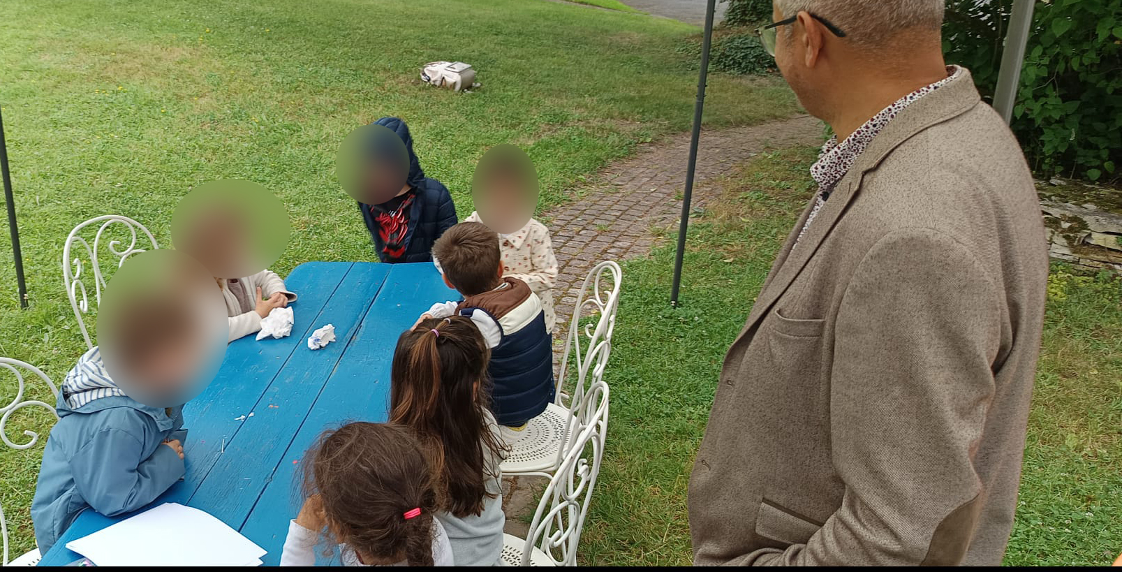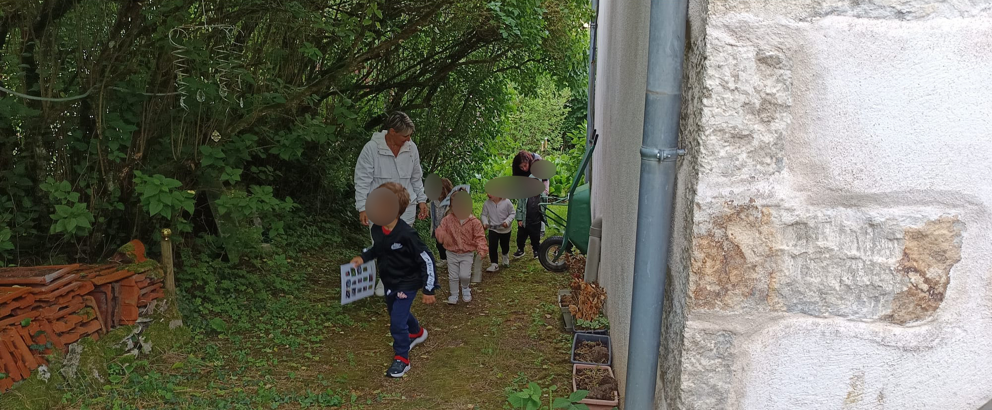 Visite de la classe de maternelle de l’école Raymond Rochette le 2 juin, les enfants très intéressés ont découvert les photos de Daniel et fait un petit jeu de piste dans les jardins.