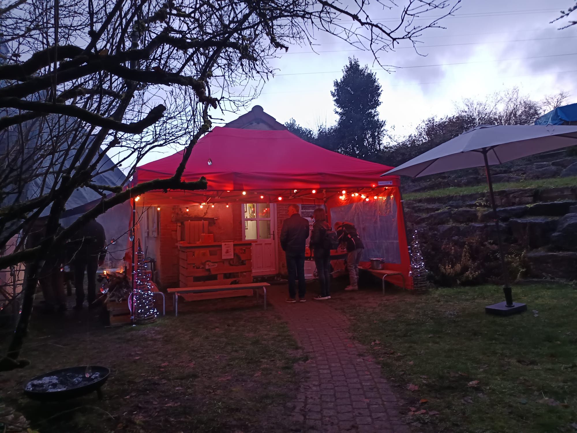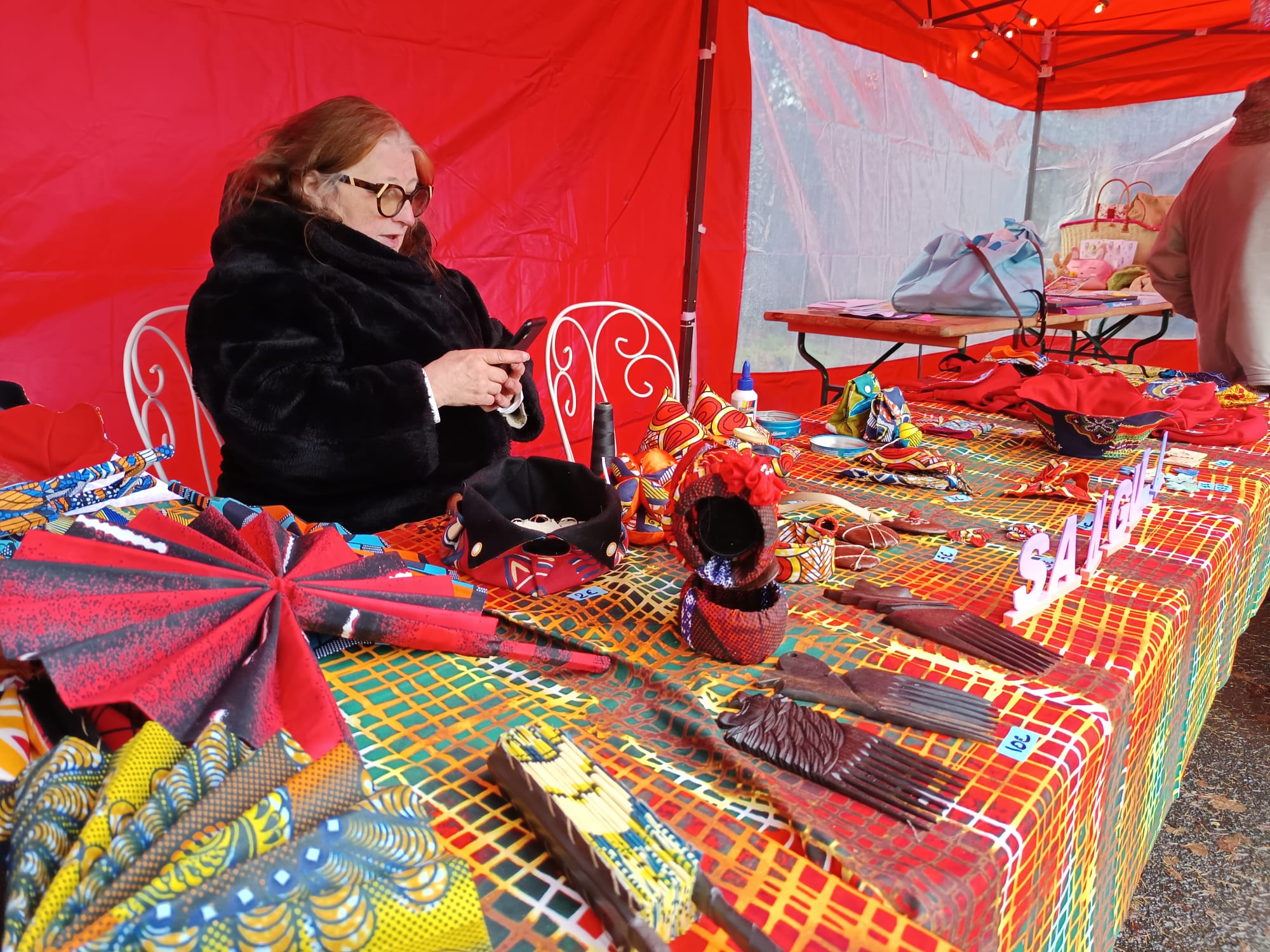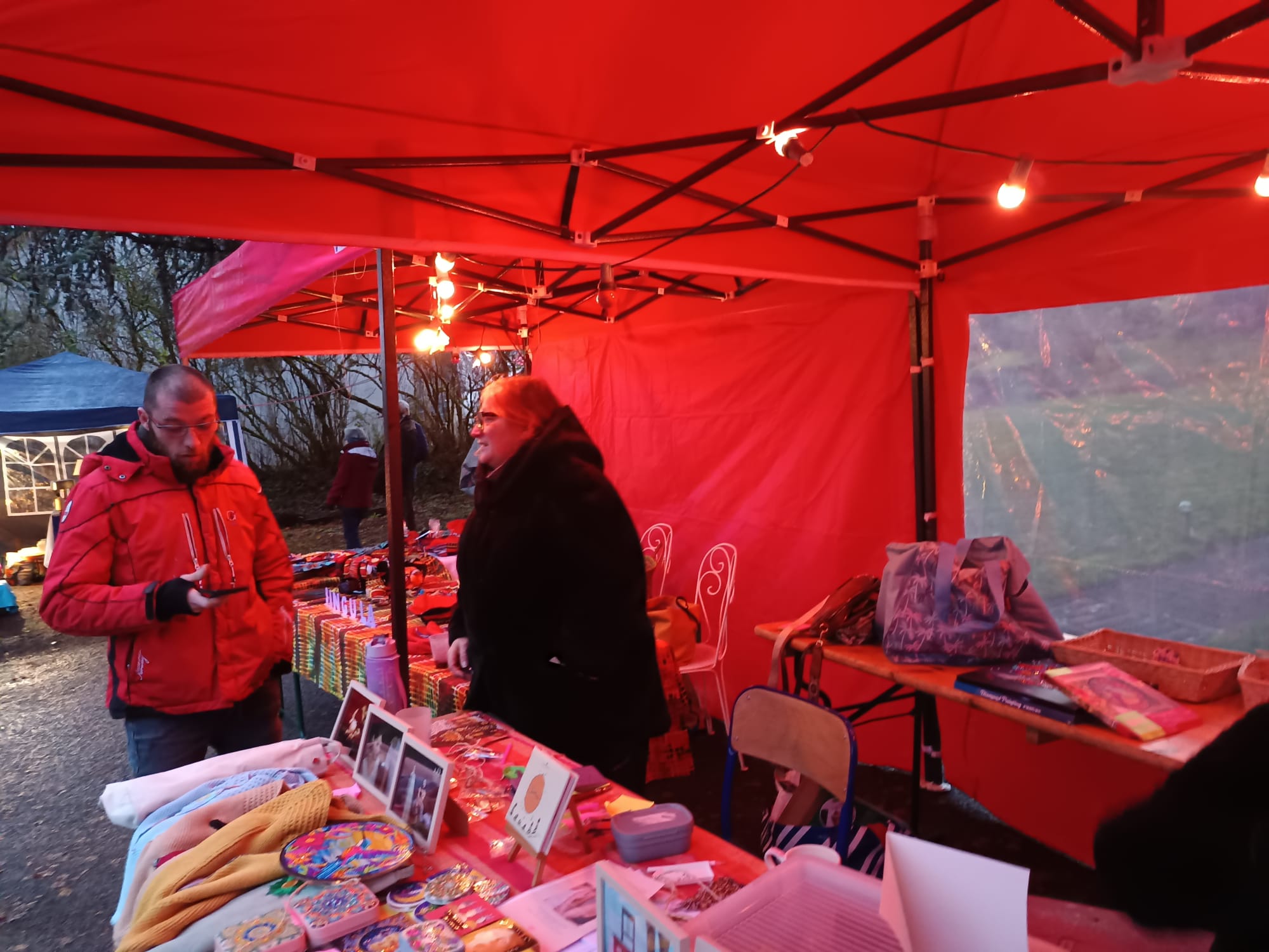 Des feux de bois dans des braseros pour cuire les marrons gros calibre, des artistes et artisans rares, disponibles et singuliers, des prix hors compétition, des cadeaux très originaux, du vin chaud maison, des soupes concoctées avec amour, très chaudes pour supporter cette fin novembre, un petit lieu où on se sent bien, des lumières roses ( y’a qu’à la baraque pour tout illuminer en rose!), des bénévoles au taquet et très dispo pour la causette et pour partager un verre… et les jardins de la baraque pour vous accueillir été comme hiver.